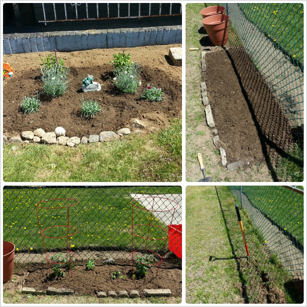 Seeing my little garden makes me very happy. I did a lot of work to get it going, so much so that I was in pain for a week after digging up the ground and getting rid of old stumps! I’m so glad that tomatoes are so easy to grow! Basil too! I really cannot wait for the peas to grow, then I can make a veggie dish, using the fruit of my labour. (heh heh)